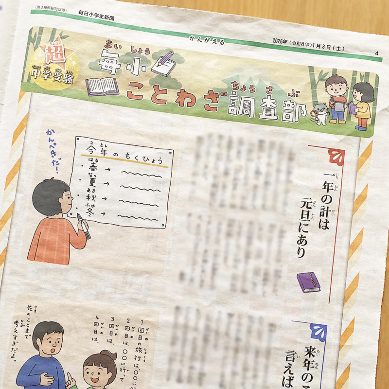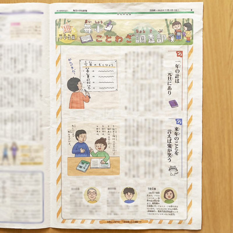 株式会社毎日新聞社様『毎日小学生新聞』「毎小ことわざ調査部」1月号のイラストを担当させていただきました。